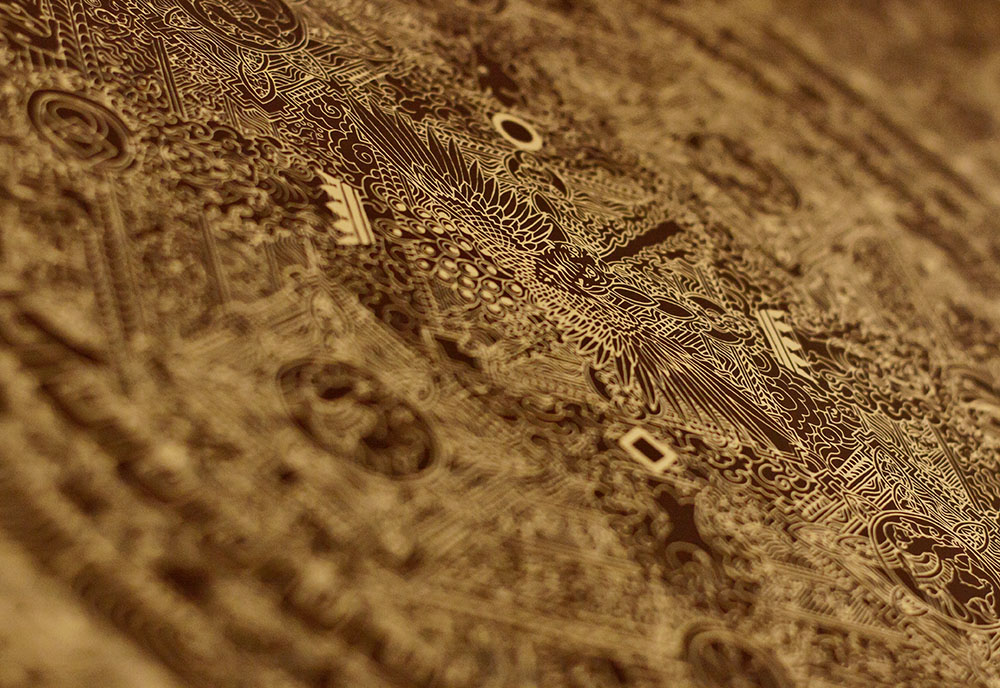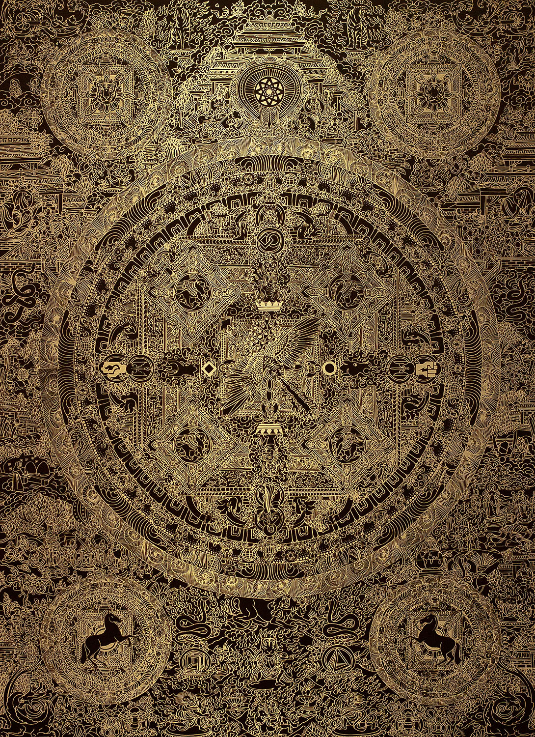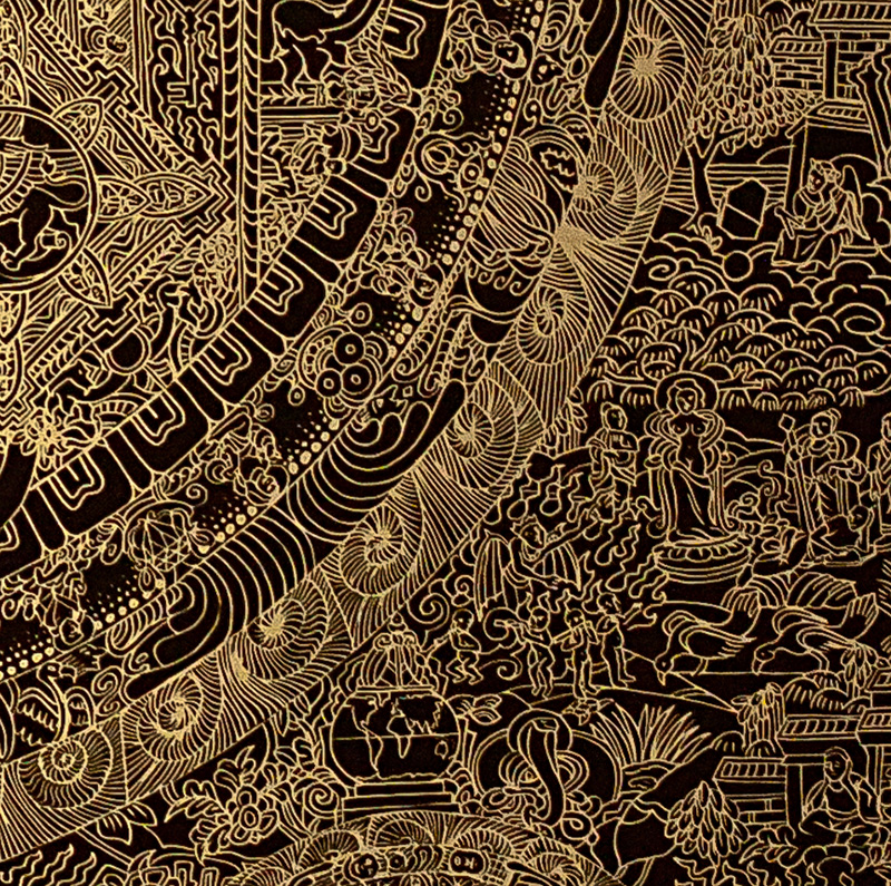 The aesthetic is inspired by Asian Buddhist art, but here each character tells a story of the conflict between A and B.